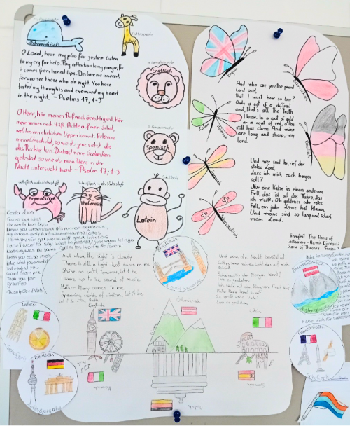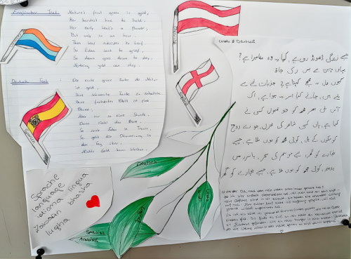 Mit 6500 bis 7000 Sprachen haben wir auf dieser Welt einen großen linguistischen Reichtum. Sprache ist die Essenz jeglicher Interaktion, Sprache ist ein Kulturgut, jede neue Sprache ist eine Bereicherung, Mehrsprachigkeit ist ein Geschenk. Dieses Motto vertritt auch die HAK Salzburg. An unserer Schule werden sehr viele Sprachen gesprochen und wir haben es uns zur Aufgabe gemacht, unsere Sprachenvielfalt sichtbar zu machen und gewinnbringend zum Einsatz zu bringen. Der sprachliche Reichtum unserer Schule trat in der Vergangenheit z.B. in den jährlichen interkulturellen Feiern in der Zeit vor Weihnachten in Form von multilingualen musikalischen und religiösen Beiträgen zutage. Zudem haben manche Klassen an unserer Schule im akademischen Jahr 2024/25 und im laufenden Schuljahr sogenannte Sprachenportraits angefertigt und selbige in der Klasse oder in der Aula und den Gängen ausgehängt. Derzeit planen und organisieren wir gemeinsam mit unseren Schülerinnen und Schülern einen schulinternen Tag der Sprachen, der am 10.04.2026 stattfinden und z.B. mehrsprachige Bücherinseln umfassen wird. Das Ziel dieser Aktionen ist, unsere gelebte Mehrsprachigkeit und unser mehrsprachiges Miteinander zu pflegen und zu würdigen, gemeinsam sprachlich zu wachsen und ganz im Sinne von voXmi voneinander neue Sprachen zu lernen und miteinander in die bunte, sprachliche Welt unserer Schulgemeinschaft einzutauchen. Wir freuen uns auf jeden weiteren Schritt in diese Richtung!