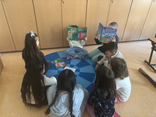 In allen Räumen der Schule wurde den Kindern in Kleingruppen vorgelesen. Dabei kamen sowohl deutschsprachige als auch anderssprachige Bücher zum Einsatz, wodurch die Schülerinnen und Schüler in unterschiedliche Sprachwelten eintauchen konnten. Neben dem Zuhören standen auch kleine Aktivitäten rund um die Geschichten auf dem Programm, die das Gelesene lebendig werden ließen und zum Mitmachen einluden.